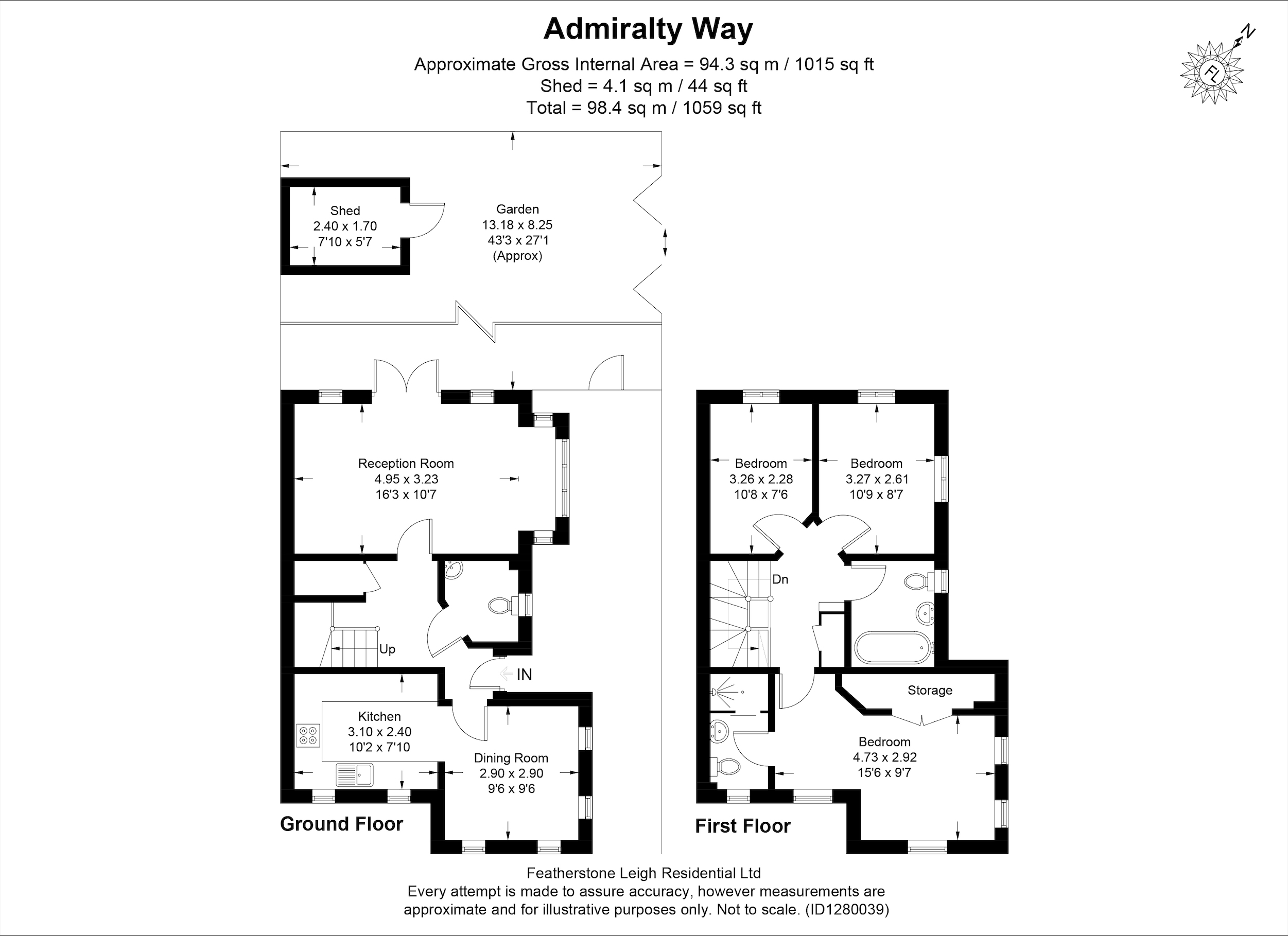This modern and well-presented family house is located in the very desirable Admiralty Way development which is a very private & secluded development, built around 2000 with generous grass areas. The house offers three bedrooms and features an attractive corner turret where it provides an impressive master bedroom with vaulted ceiling and en-suite shower room. On the ground floor, there is a generous central hallway with ground floor WC and to the front, a dining room leading to modern kitchen and to the rear a spacious living room with French doors on to an enchanting westerly-facing lawn garden, which receives excellent sun light throughout the afternoons. There is a side gate by the front door giving excellent side access to the garden too. To the front of the property there are TWO allocated off-street parking spaces. The location is excellent for families especially as it is a this well-maintained developent with excellent landscaping. It is so close to the wonderful expanse of Bushy Park only 300 yards away and within only 1/2 mile from train station. There are excellent schooling options from here too – it is in catchment for several state schools including Teddington & Turing House secondary schools and the Ofsted outstanding Collis Primary and potentially SM&SP too. Offered to the market with no onward chain. Estate charge – approx. £540pa EPC rated C