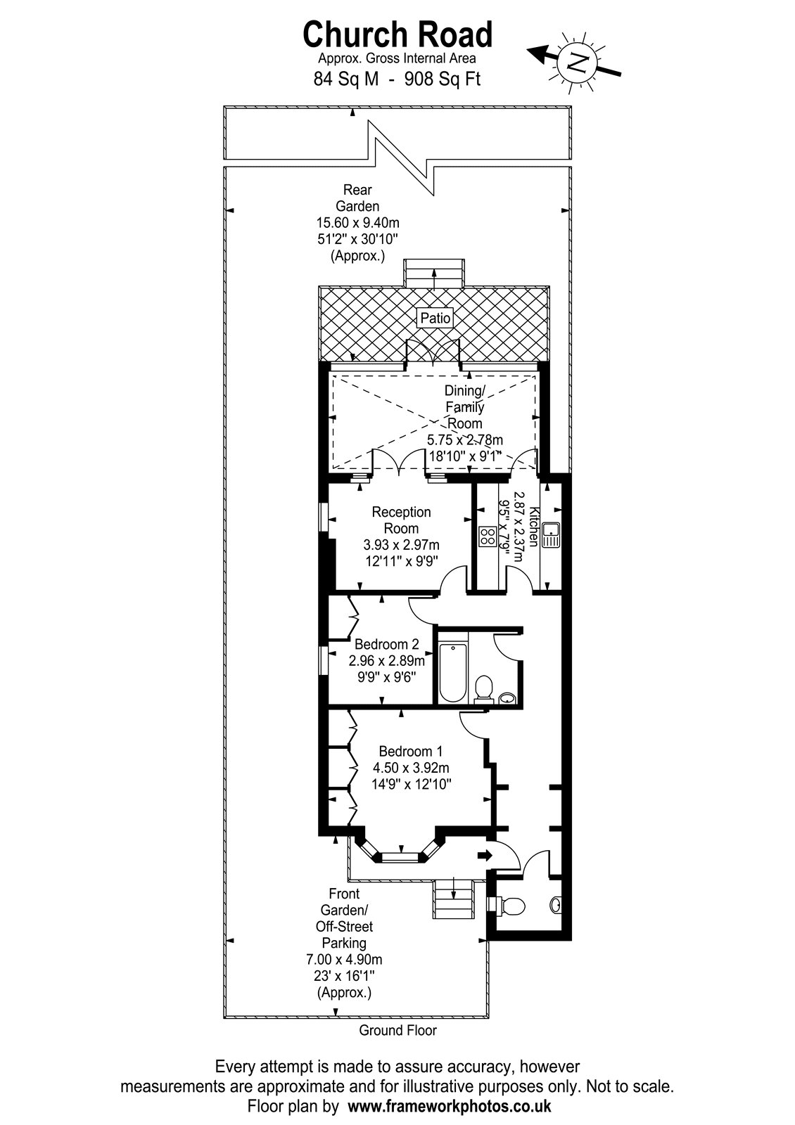 Spanning over 900sqft, this two-bedroom apartment features its own private entrance. The property compromises a double bedroom to the front, a family bathroom and a second bedroom to the side. At the rear, the reception room flows into a light spacious family room.