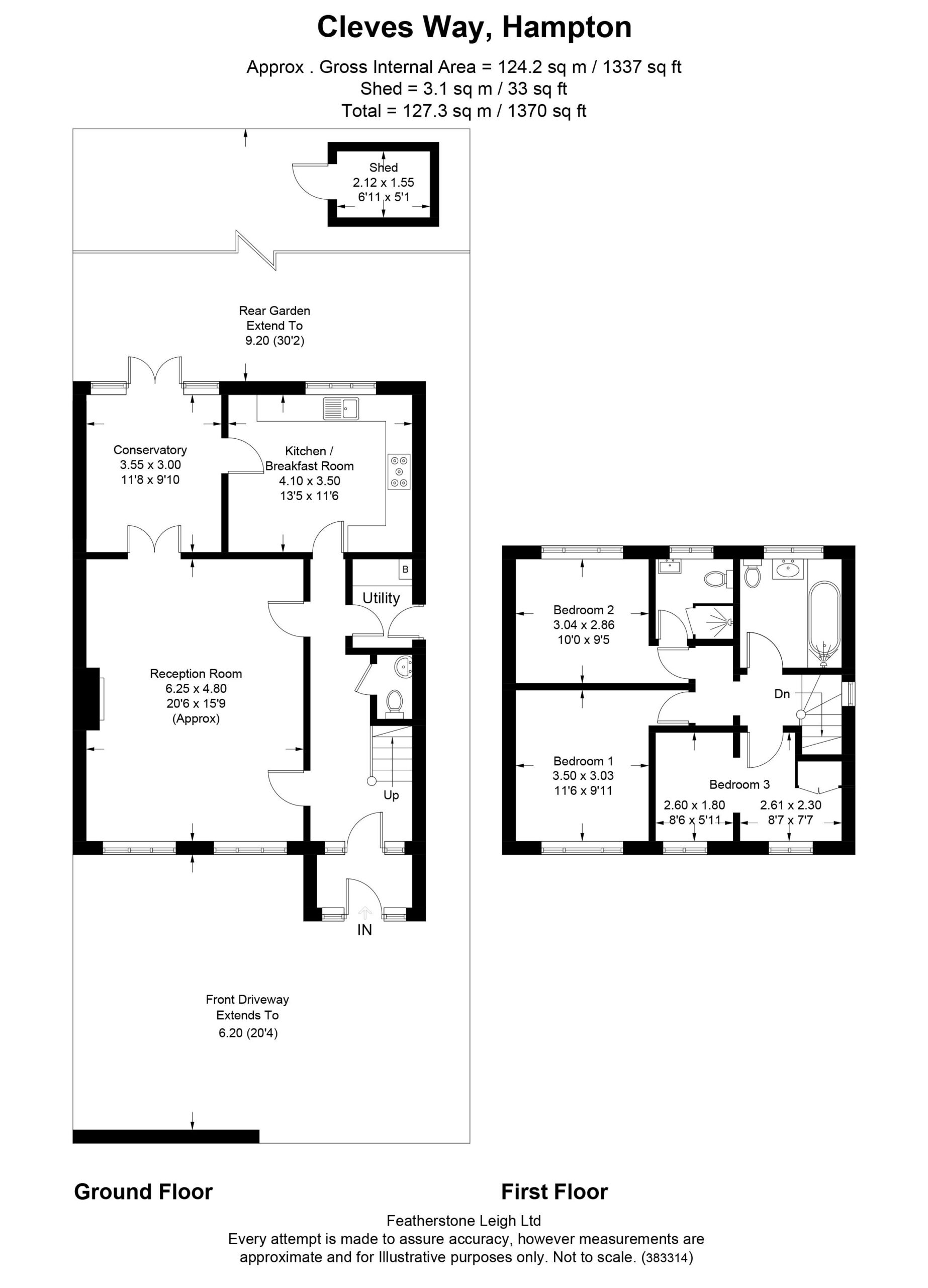 This very well-presented semi-detached family house has recently been considerably extended and is located in a cul-de-sac only 0.4 of a mile from Hampton train station. It has front off-street parking and a large rear garden which is currently mostly as patio with mature border shrubs and a shed. Internally, it comprises an impressive 16ft main reception room. To the rear is a separate hardwood conservatory room with double French doors on to the garden. Next to the conservatory, looking on to the garden is a spacious, and well-appointed kitchen/breakfast room with plenty of floor and wall-mounted timber-fronted storage units. Off a broad entrance hallway is a separate utility room with side door and a ground floor WC. On the first floor there are two double bedrooms, one of which has the benefit of an en-suite shower room plus there is a third bedroom with a wardrobe. There is an attractive family bathroom with matching white three-piece suite and shower over bath. The location is fabulous for schools as well with Hampton Infant & Nursery School just around the corner and all the other excellent schools in Hampton in near vicinity too. No onward chain. EPC = C