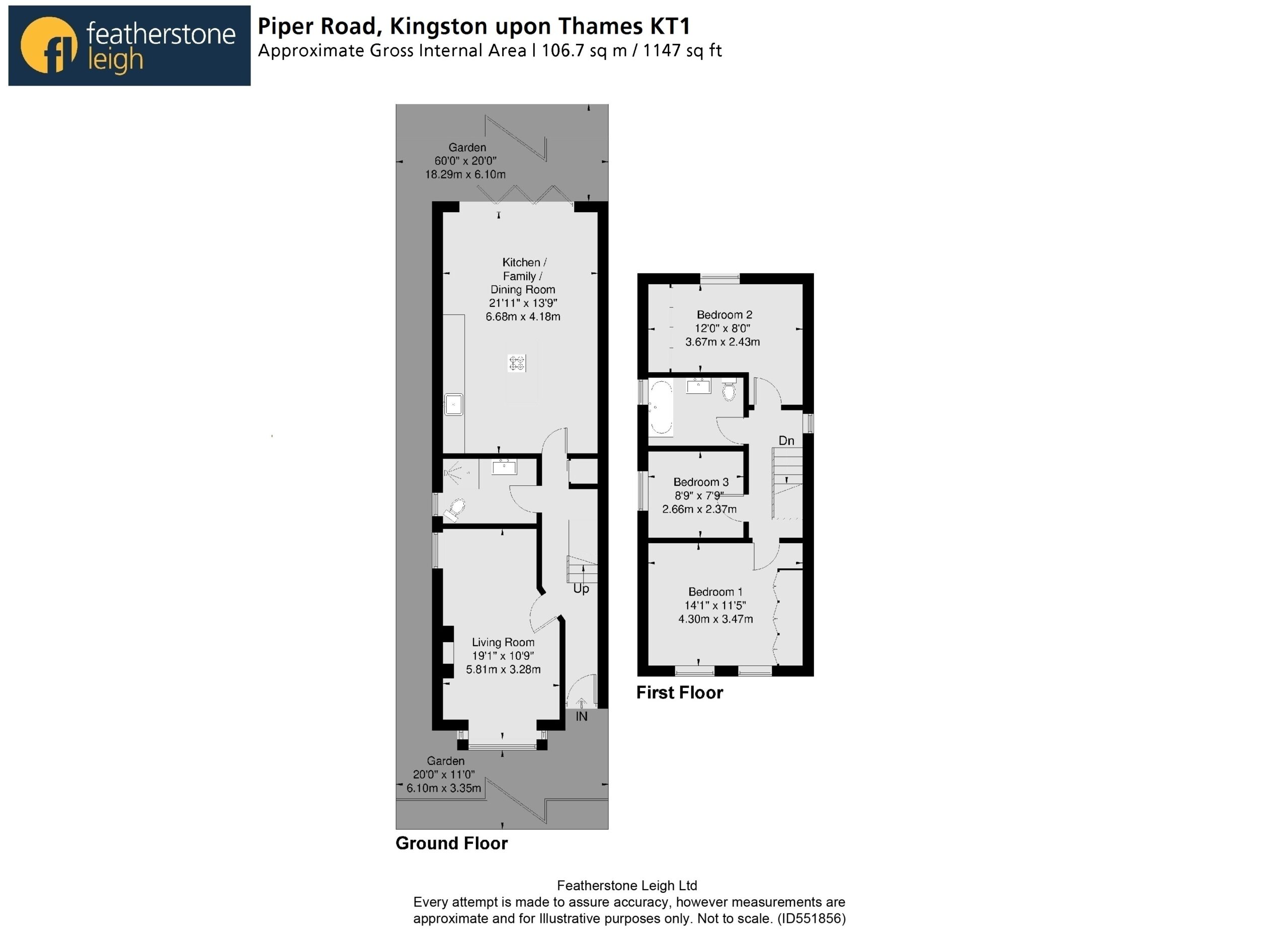 Norbiton’s Zone 5 railway station is within 0.75 miles (17 min walk) of the property and offers a frequent service into London Waterloo.