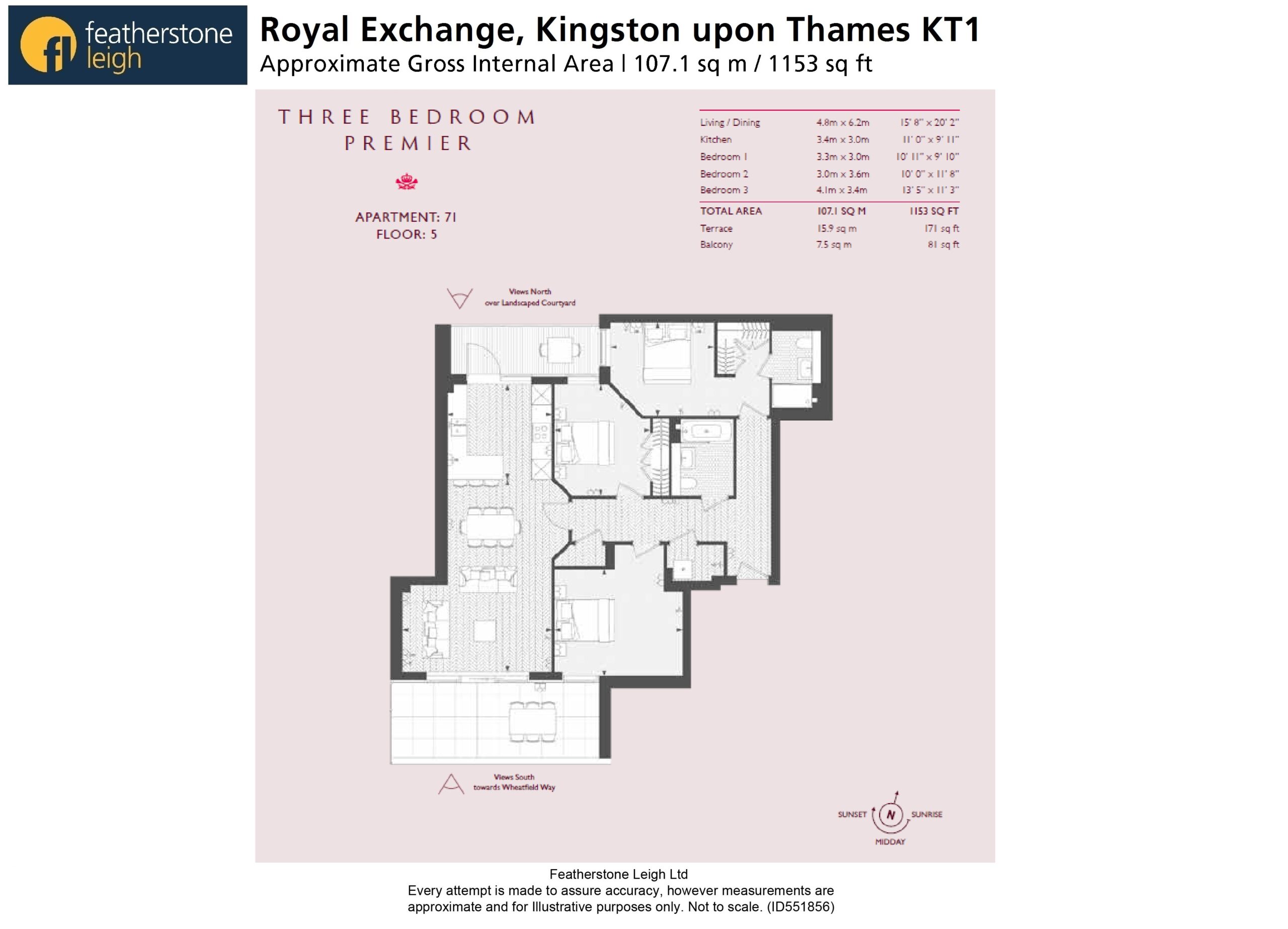 Apartment 71 is a spacious three double bedroom apartment on the fifth floor of Rutherford House. This brand new apartment boasts 1153 sq ft of internal accommodation and includes an open-plan kitchen/reception/dining area as well as a private balcony and additional roof terrace totalling 24 sq m / 252 sq ft .