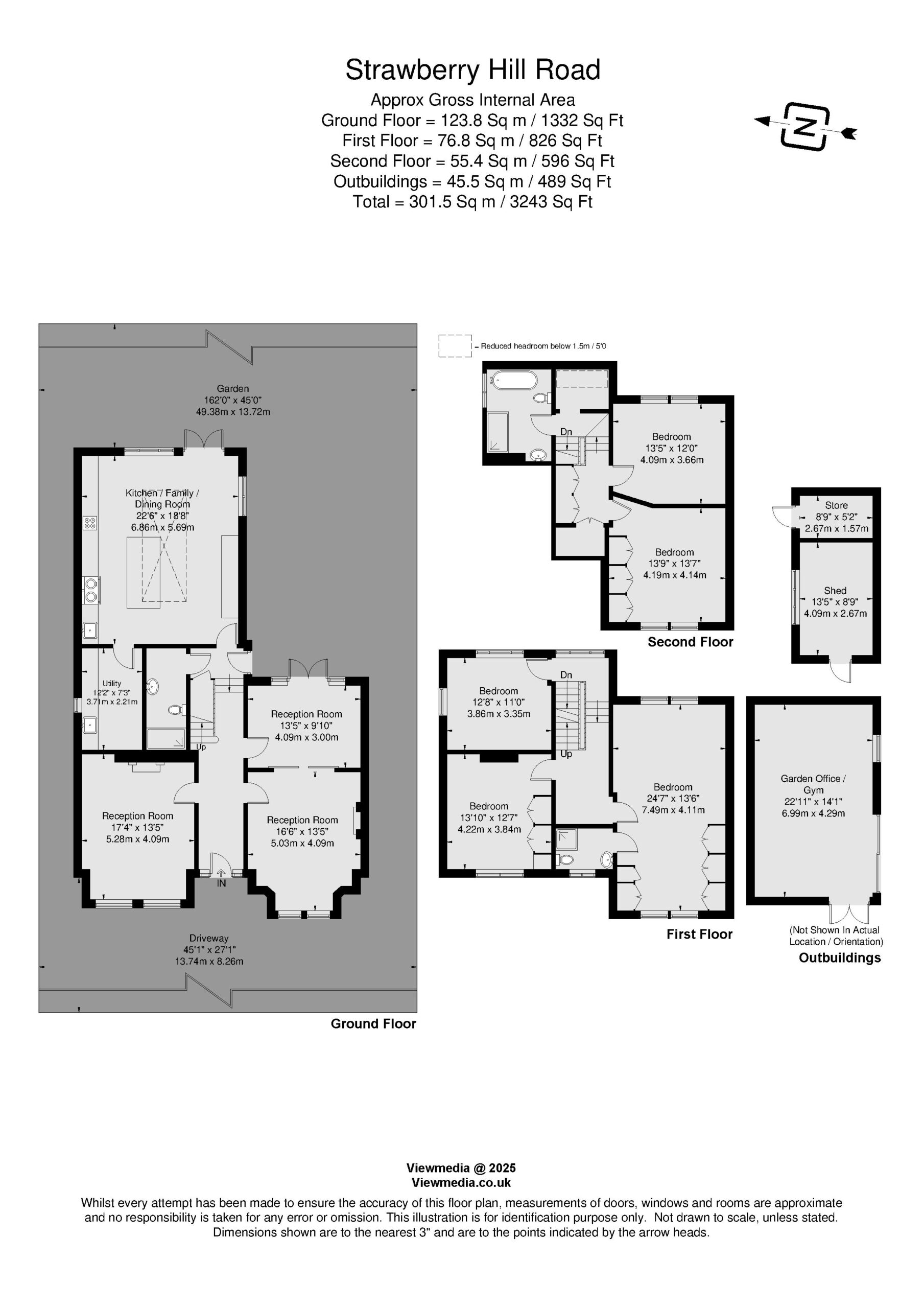The first floor boasts three double bedrooms, including the primary bedroom with ample storage, and an ensuite shower room with WC.