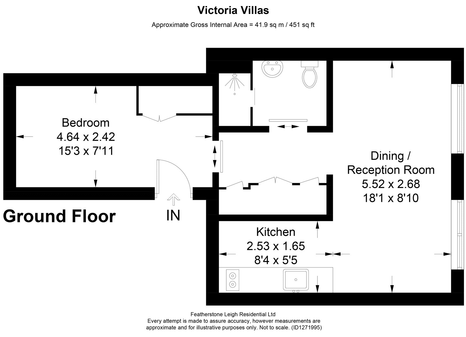 The property features a spacious double bedroom with built-in wardrobes, a modern and generously sized bathroom, and the added benefit of underfloor heating throughout.