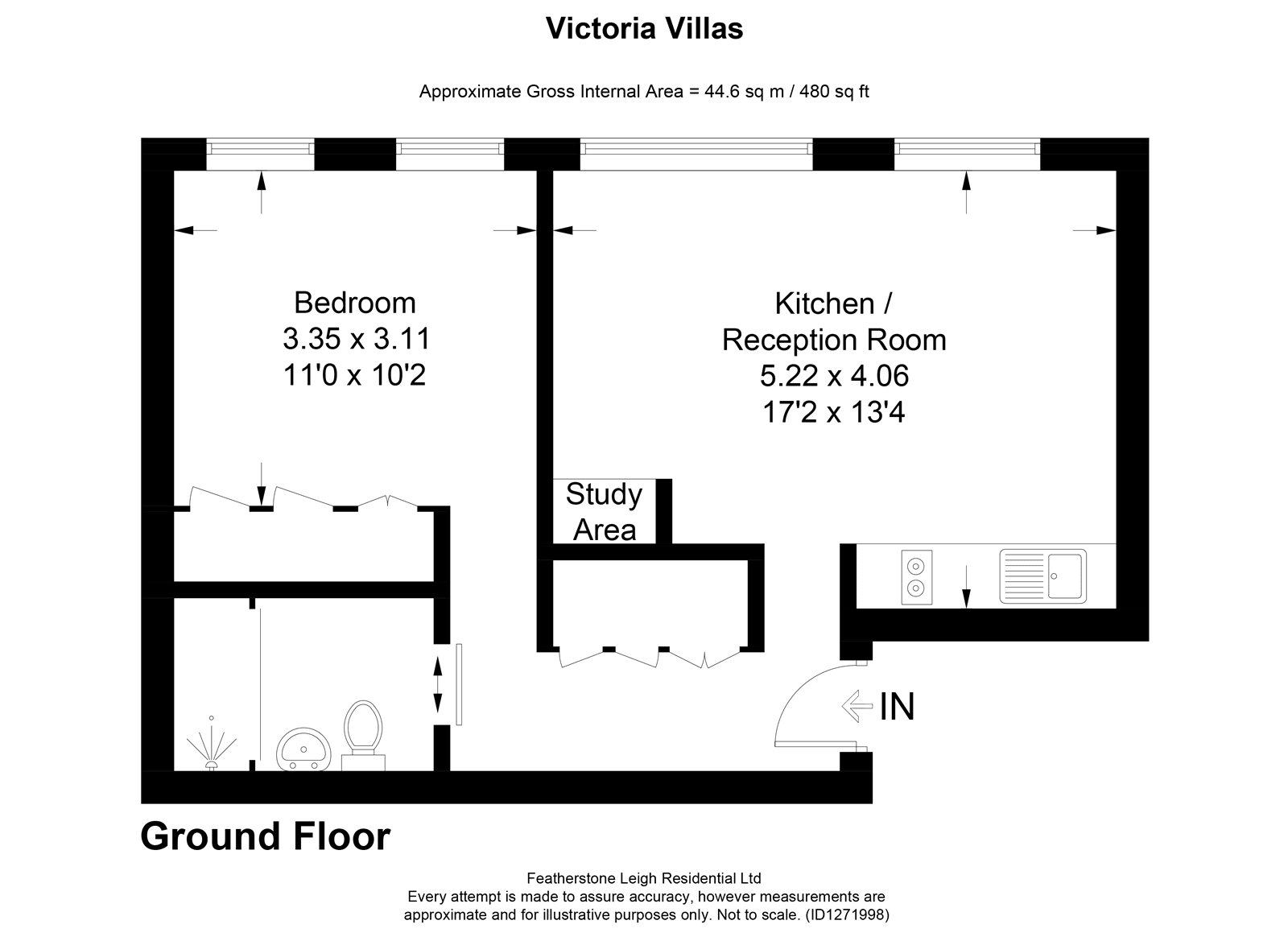 The property features a spacious double bedroom with built-in wardrobes and a large modern bathroom, and benefits from underfloor heating throughout the apartment.