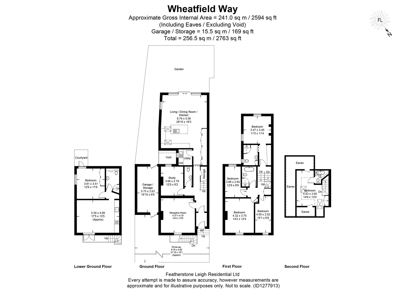 The first floor comprises four well-proportioned bedrooms and two bathrooms, including an en-suite to the principal bedroom. The top floor hosts a further generous double bedroom with en-suite shower room and extensive eaves storage.